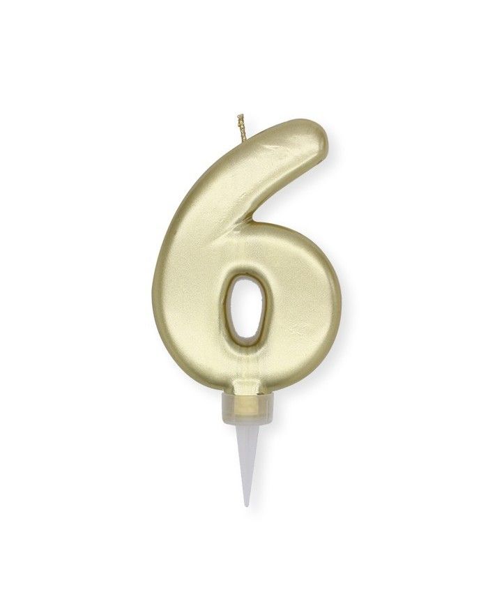 Candelina di cera per compleanno Plump Numero 6 Oro Metal cm 10